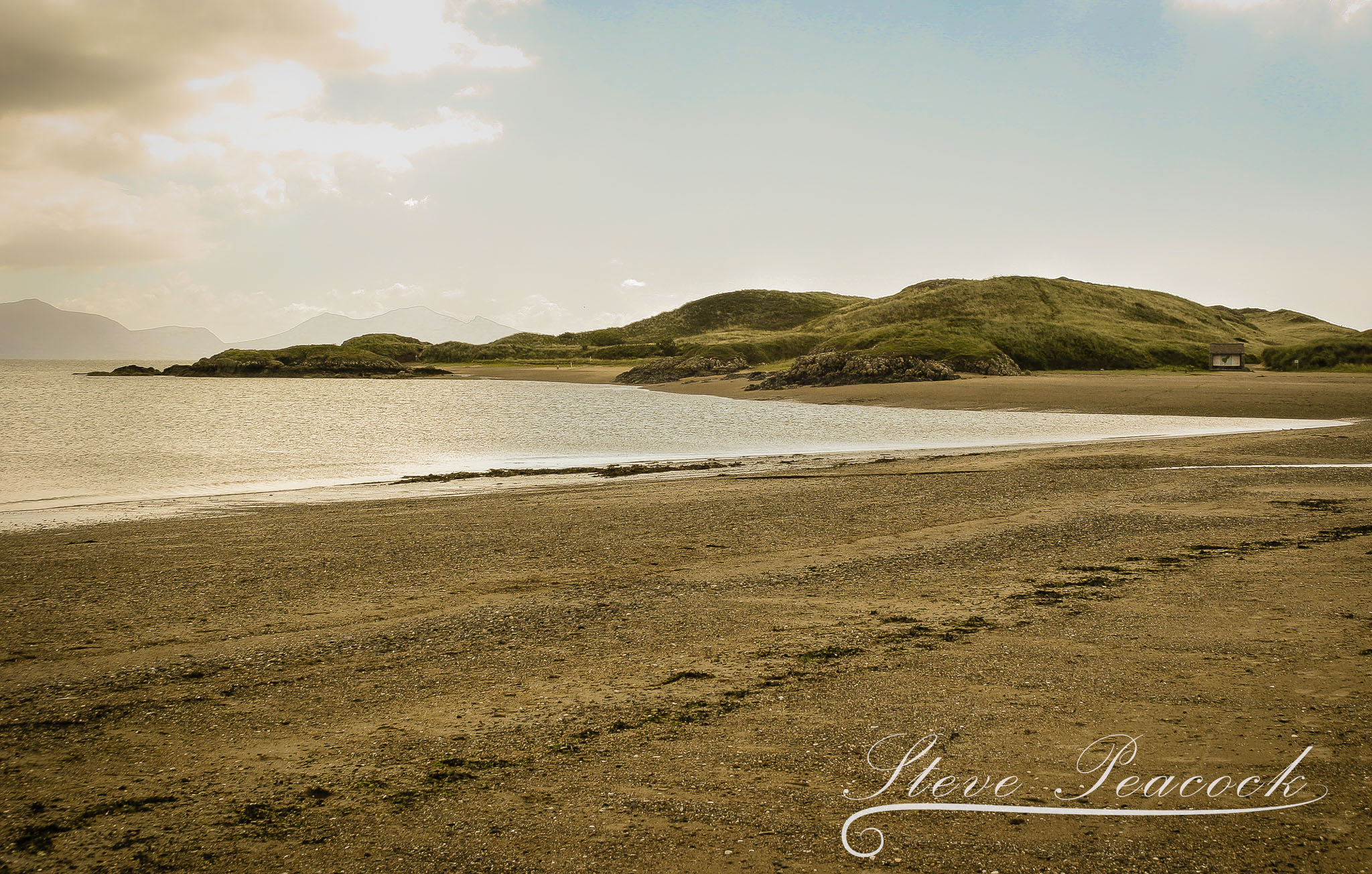 GalleriesLandscapesSea ScapesLlanddwyn Island Llanddwyn Island Llanddwyn island viewed from Newborough Warren Beach. Snowdonia in the distance